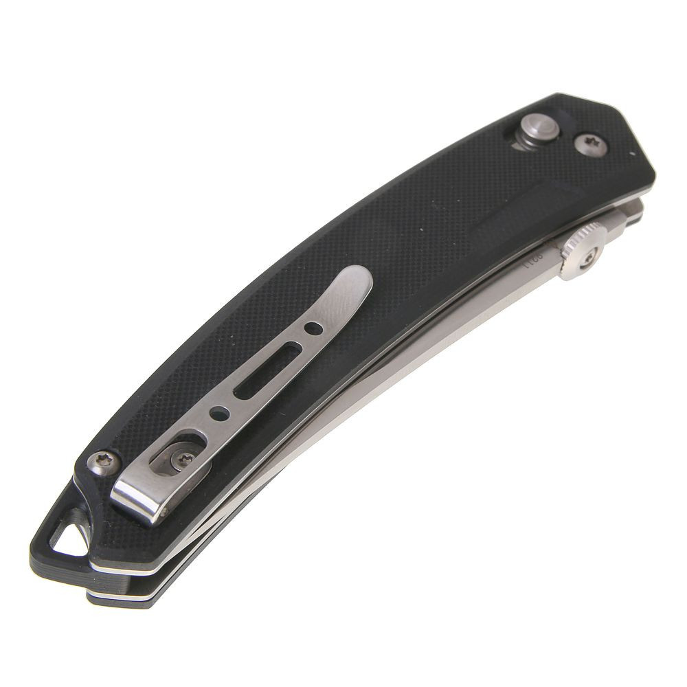 Po rozłożeniu ostrze oferuje wszechstronne zastosowanie – spiczasty czubek doskonale sprawdza się przy precyzyjnym przekłuwaniu, a długa krawędź tnąca umożliwia płynne cięcie i krojenie. Rękojeść składa się z stalowego linera pokrytego teksturyzowanymi okładzinami G10, które gwarantują pewny chwyt nawet w trudnych warunkach. Ergonomiczny kształt zapewnia dodatkowy komfort podczas pracy.