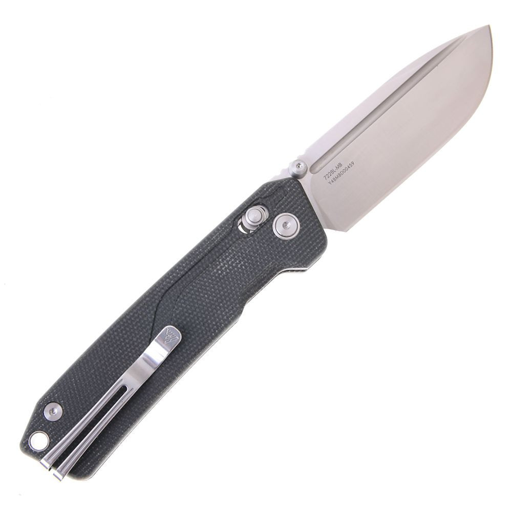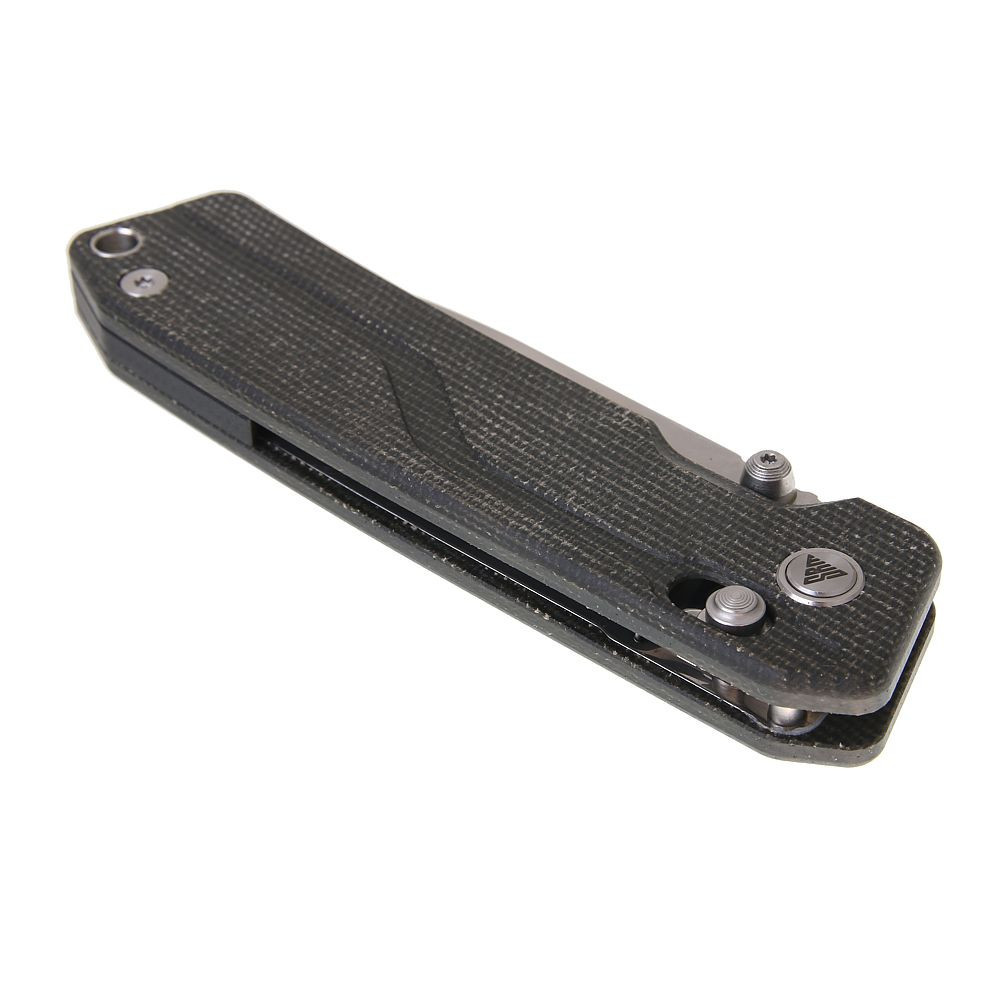 Rękojeść dostępna jest w kilku trwałych wariantach – G10, Micarta lub aluminium – gwarantując pewny i stabilny chwyt.